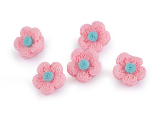 Gombík 3D kvet imitácia háčkovanie veľkosť 28" - ružová sv. (25 ks)
