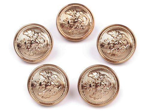 Na plastových gombíkoch nájdete erb, ktorý vám vynikne na kabáte. Môžete ich našiť na vojenské alebo poľovnícke oblečenie, perfektne sa budú vynímať aj na historických kostýmoch. Tieto gombíky majú spodné prišívanie. [Veľkosť gombíkov nájdete v tejto tabuľke.]