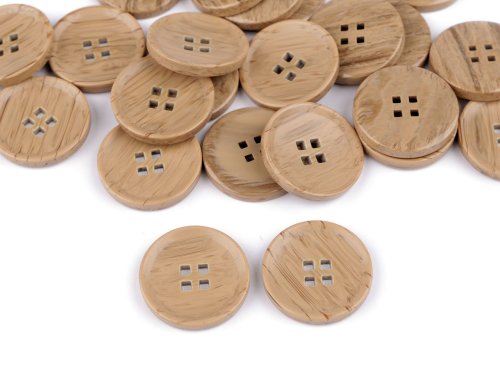Štvordierkové gombíky majú zosilnený okraj a svojim zafarbením pripomínajú štruktúru dreva. Ich dierky nie sú typicky okrúhle, ale majú tvar štvorca. Gombíky vyniknú na kabátoch, svetroch, vestách, sakách a pod. Veľkosť gombíkov nájdete v tejto tabuľke.