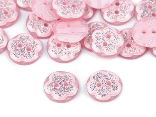Gombíky s kvetom zdobia efektné trblietavé glitre. Tie sú v gombíku zafixované, takže nehrozí, že opadajú. Gombíky využijete nielen na odevy, ale tiež nimi môžete skrášliť doplnky ako sú tašky, čiapky, rukavice a pod. Sú vhodné aj ako ozdoba na nalepenie na foto rámčeky, albumy, denníky, priania alebo pozvánky.