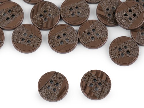 Štvordierkové gombíky majú z časti laserom vygravírovaný povrch. Vyniknú nielen na kabátoch, ale aj na svetroch, vestách a pod. Veľkosť gombíkov nájdete v tejto tabuľke.
