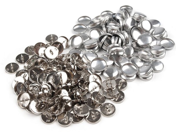 Gombík na poťahovanie sa skladá z dvoch kovových častí - spodná je z magnetického kovu a vrchná z hliníka. Gombíky majú spodné prišívanie. Na potiahnutie môžete zvoliť rôzne materiály. Využijú ich prevažne čalúnici. [Na látku odporúčame použiť výsečník, ktorý nájdete pod kódom 750973.]
