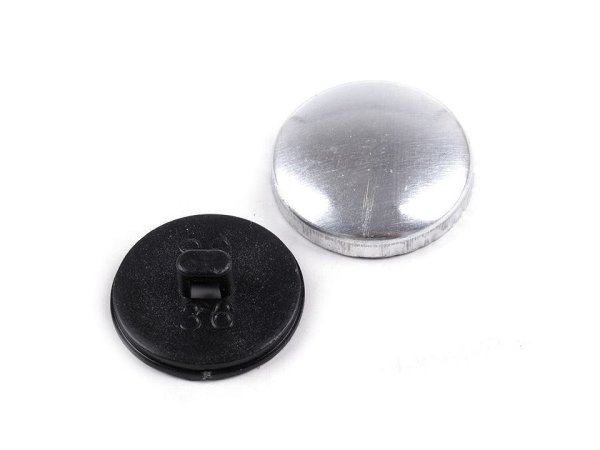 Gombík na poťahovanie sa skladá z dvoch častí - kovové a plastové.