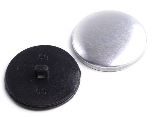Gombík na poťahovanie sa skladá z dvoch častí - kovové a plastové.