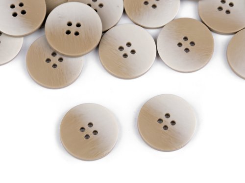 Štvordierkové gombíky majú pútavý dizajn vďaka jemnému farebnému ombrému prechodu. Vyniknú nielen na kabátoch, ale aj na svetroch, vestách a pod. Veľkosť gombíkov nájdete v tejto tabuľke.