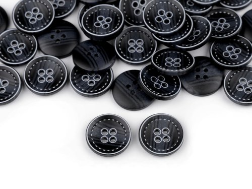 Štvordierkové gombíky sú zaujímavé svojou potlačou v podobe postranného prešitia. Štýlovo vám ozdobia mikiny, svetre, kabátiky a pod. Veľkosť gombíkov nájdete v tejto tabuľke.