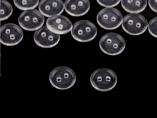 Transparentné dvojdierkové gombíky sú vhodné ako zapínanie na košele, svetre, šaty aj vankúše. Dajú sa použiť aj ako protikus. Majú okrúhly tvar. [Gombíky sú balené v sáčku.] Veľkosť gombíkov nájdete v tejto tabuľke.