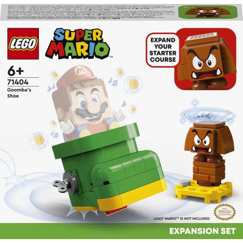 Prežívajte zábavné dobrodružstvá vo svete LEGO® Super Mario™ s rozširujúcim setom Goombova topánka (71404), ktorý je určený deťom od 6 rokov. Set obsahuje zostaviteľnú verziu Goombovej topánky z kociek a figúrku LEGO Goomby, ktorú deti môžu využiť vo svojich herných úrovniach. Zmocnite sa topánky s LEGO® Mariem, LEGO® Luigim alebo LEGO® Peach™ (figúrky nie sú súčasťou balenia) a získavajte digitálne mince za skákanie a predvádzanie trikov vo vzduchu. (Poznámka: Pre plnohodnotný interaktívny herný zážitok je vyžadovaný štartovací set 71360, 71387 alebo 71403.)
