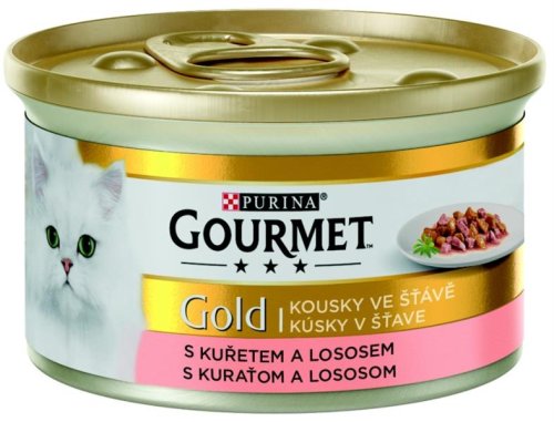 Kúsky vo vlastnej šťave s lososom a kuracím. Dávkovanie: Dospelú mačku s priemernou hmotnosťou 4 kg kŕmte približne tromi konzervami denne, najlepšie v dvoch samostatných kŕmnych dávkach. Individuálne potreby sa môžu líšiť a kŕmnu dávku je preto nutné prispôsobiť tak, aby si vaša mačka udržala optimálnu hmotnosť. Gravidné a dojčiace mačky kŕmte podľa ich potreby. Podávajte pri izbovej teplote. Čerstvá čistá voda by mala byť vždy k dispozícii.