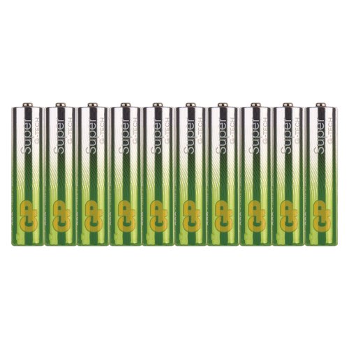 Značka GP Objednávacie číslo B0111G Produktové číslo 1013121001 EAN 4891199224089 veľkosť batérie AAA chemické zloženie alkalickej kategórie/rada Super Alkaline možnosť nabíjania nie kapacita neuvádza sa napätie 1,5 V typ LR03 (mikroceruzka, A4) prevádzkový počet nabíjacích cyklov nenabíjacia hmotnosť 11,4 g max. skladovateľnosť 10 rokov značka GP rozmer 10,5 × 44,5 mm predajný obal 10 ks, papierová krabička