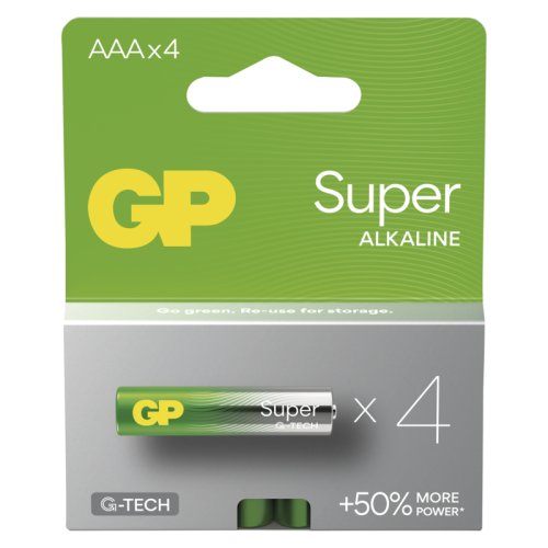 Značka GP Objednávacie číslo B01114 Produktové číslo 1013124200 EAN 4891199218224 veľkosť batérie AAA chemické zloženie alkalickej kategórie/rada Super Alkaline možnosť nabíjania nie kapacita neuvádza sa napätie 1,5 V typ LR03 (mikrotužka, AAA) prevádzkový počet nabíjacích cyklov nenabíjacia hmotnosť 28 g max. skladovateľnosť 10 rokov značka GP rozmer 10,5 × 44,5 mm predajný obal 4 ks, papierová krabička