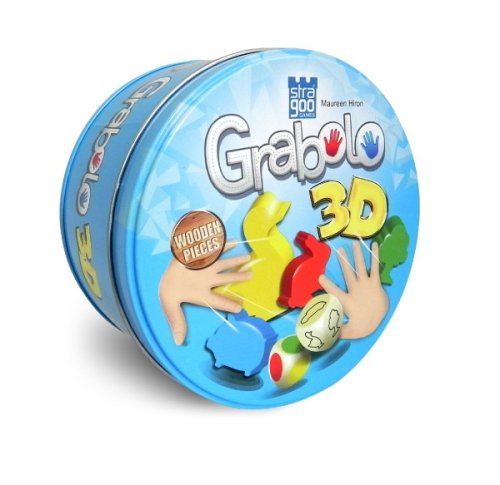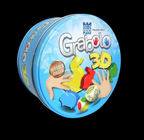 Ďalší variant obľúbenej postrehovej hry GRABOLO, tentoraz s drevenými figúrkami. Dokáž, že máš najrýchlejšie ruky, ostrie zrak a skvelú pamäť. Kocky určia kombináciu farby a tvaru, tie nájdi správnu figúrku ako prvé. Cieľom hry je získať predpísaný počet figúrok. Plechová krabička obsahuje 36 drevených 3D figúrok, farebnú a obrázkovú kocku. Hra je určená pre 2 – 4 hráčov, trvá 6 – 10 minút, odporúčaný vek 4 – 99 rokov.
