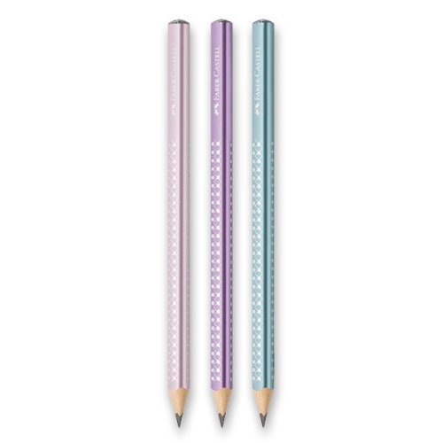 Kvalitná grafitová ceruzka Faber-Castell Sparkle Jumbo s perleťovo lesklým povrchom as glitrovou povrchovou úpravou vo veľkosť Jumbo. Ergonomický trojhranný tvar. Ľahké, FSC certifikované drevo. Špeciálna SV technológia vglejovania zamedzuje lámaniu tuhy pri páde ceruzky na zem. Tvrdosť tuhy B.