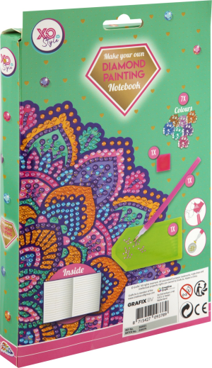 Blok A5 s tvrdými doskami s originálnou výzdobou pomocou farebných kamienkov. Relaxácia a trblietavý výsledok to v sebe snúbi diamantové obrázky. Postup: