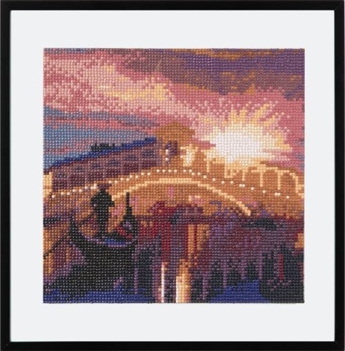 Postup: Horná strana plátna je potiahnutá fóliou s lepiacou vrstvou. Dávajte ju postupne po častiach tak, ako budete aplikovať kamienky. Pri sňatí celej fólie naraz sa môže lepiaca vrstva znečistiť a kamienky by nemuseli tak dobre držať. Plátno obsahuje znaky, ktoré sú uvedené v priloženej legende a odkazujú na príslušné vrecko s kamienkami označené číslom. Kamienky z daného vrecka vysypte do misky. Do hrotu pera naberte vosk, vďaka ktorému sa kamienky ľahko prichytia na pero. Kamienky perom aplikujte na obrázok. Po nalepení danej farby kamienky nasypte späť do vrecka a pokračujte s ďalšou farbou. Poznámka: Úvodná fotografia obsahuje iba výrez diamantového obrázkov. Rám nie je súčasťou balenia.