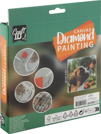 Postup: Horná strana plátna je potiahnutá fóliou s lepiacou vrstvou. Dávajte ju postupne po častiach tak, ako budete aplikovať kamienky. Pri sňatí celej fólie naraz sa môže lepiaca vrstva znečistiť a kamienky by nemuseli tak dobre držať. Plátno obsahuje číslice alebo znaky, ktoré odkazujú na príslušné vrecko s kamienkami označené číslom. Kamienky z daného vrecka vysypte do misky. Do hrotu pera naberte vosk, vďaka ktorému sa kamienky ľahko prichytia na pero. Kamienky perom aplikujte na obrázok. Po nalepení danej farby kamienky nasypte späť do vrecka a pokračujte s ďalšou farbou. Súčasťou balenia je aj drevený rám, na ktorom je plátno s potlačou natiahnuté. Rozmer tohto rámčeka je 18x18cm.