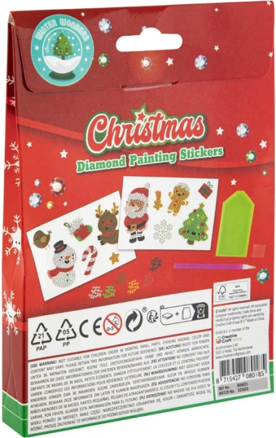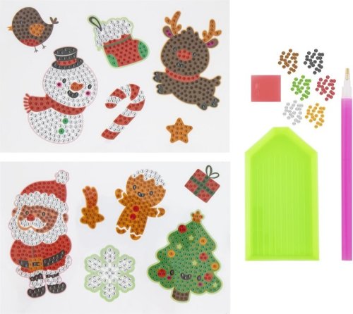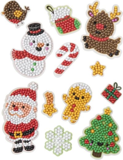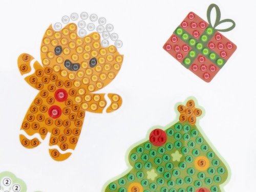 12 samolepiek s vianočnými motívmi. V sade nájdete všetko potrebné - 6 farieb kamienkov, aplikátor, vosk aj misku. Pomocou aplikačného pera nanášate kamienok za kamienkom na označené miesta na samolepkách. Nie sú potrebné žiadne umelecké schopnosti.