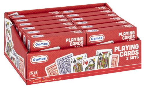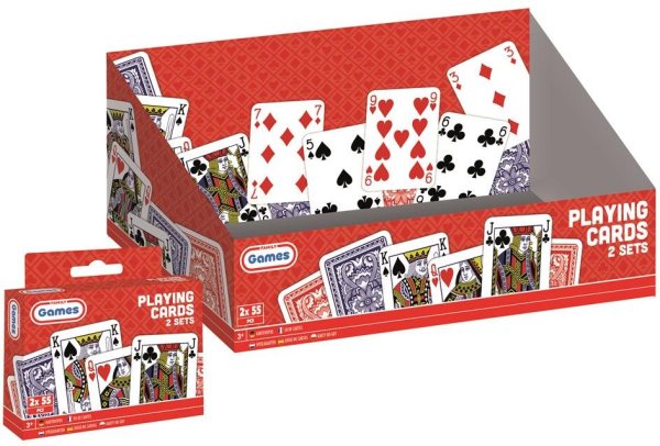 Klasické karty francúzskeho typu vhodné na hranie kanasty, žolíka, bridže, pokru alebo pasiánsu. Balenie obsahuje 2 x 55 hracích kariet. Veľkosť jednej karty je cca 8,5 x 5,5 cm.