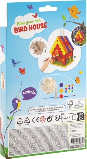 Súprava na výrobu drevenej búdky pre vtáčiky môže zdobiť tvoju záhradu alebo napríklad balkón. Podľa priloženého obrázkového návodu zostáv (pokojne za pomoci otecka alebo mamičky) búdku. Potom už sa môžeš pustiť do zdobenia, použi priložené farbičky a štetec, len nech je domček pre vtáčiky pekne farebný. Bude to zábava a výsledok bude stáť určite zato!