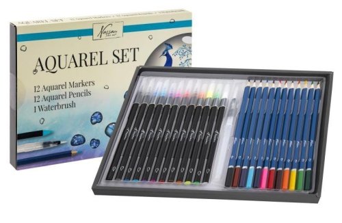 Kreatívna sada akvarelových fixiek a farbičiek poteší všetkých nadšencov akvarelu. Set akvarelových popisovačov Nassau Fine Art s atramentom na vodnej báze vám vytvorí dokonalý zážitok z každej maľby. Marker je vhodný pre začiatočníkov aj pre pokročilejších. Môže sa aplikovať buď na suchý alebo navlhčený papier. V sade sa nachádza aj plniteľný štetec na vodu, vďaka ktorému môžete vytvoriť jedinečné akvarelové efekty. Kresby vytvorené akvarelovými farbičkami je možné miešať s vodou, čím dosiahneme nádherné akvarelové maľby. kreatívna akvarelová sada obsahuje 12 x akvarelové fixky 12 x akvarelové farbičky 1 x štetec na vodu so zásobníkom pre začiatočníkov aj pokročilých