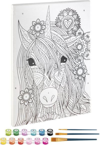 GRAFIX Maľovanie podľa čísel: Jednorožec, plátno na ráme 30x40cm