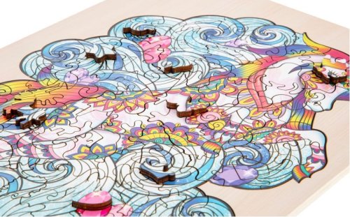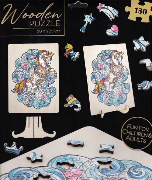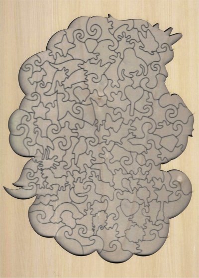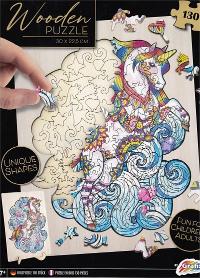 časť dielikov je v tvare zvieratiek a predmetov na podkladovej doske sú zrejmé obrysy dielikov puzzle je možné skladať na doske aj bez dosky (väčšia obtiažnosť) súčasťou balenia je aj praktický stojan na vystavenie hotového obrázku