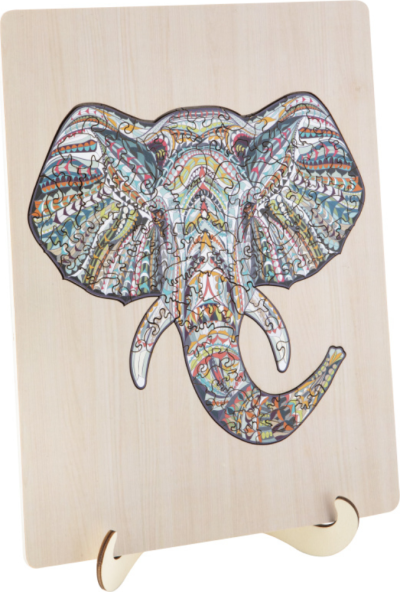 časť dielikov je v tvare zvieratiek a predmetov na podkladovej doske sú zrejmé obrysy dielikov puzzle je možné skladať na doske aj bez dosky (väčšia obtiažnosť) súčasťou balenia je aj praktický stojan na vystavenie hotového obrázku