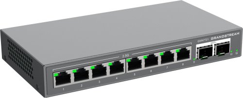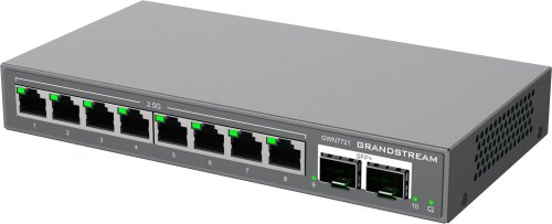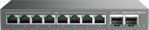 GWN7721 je 10portový managovateľný switch L2 Lite, vybavený 8x 2,5G ethernetovými portami a 2x 10gigabitovými SFP+ portami, vhodný pre malé a stredné podniky pre budovanie škálovateľných, bezpečných a inteligentných sietí.
