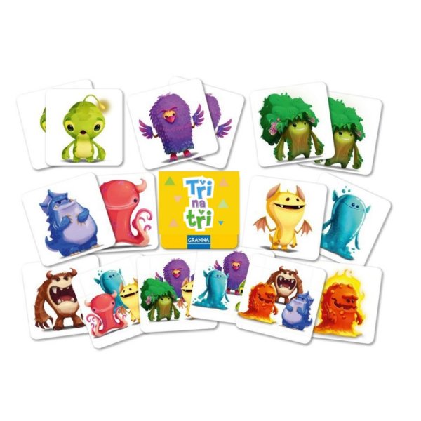 Svižná postrehová hra je plná rozvádzaných príšeriek, ktoré sa rady hrajú na schovávačku. Prvý hráč, ktorý chytí päť z nich, sa stáva víťazom! Cieľom hry je prikladať k sebe vhodné kartičky tak, aby vznikali rady farieb a vzorov. Na stole leží štvorec tvorený deviatimi štartovnými kartami s obrázkami príšeriek. Hráči na nich pokladajú karty so zodpovedajúcimi príšerkami a podobne ako v piškvorkách sa snažia tvoriť víťazné rady; riadi sa pritom farbou alebo vzorom pozadia. Hra pre celú rodinu obsahuje dve varianty s rôznou obtiažnosťou a prináša nielen dobrú zábavu, ale pomáha aj cvičiť postreh, rýchle reakcie a schopnosť sústredenia. Ako darček sa navyše v krabičke skrýva aj pexeso zadarmo! Obsah balenia: 81 kariet príšeriek 9 štartových kariet 18 bodovacích žetónov návod pexeso ako darček Hlavné vlastnosti: hra pre celú rodinu obsahuje dve varianty s rôznou obtiažnosťou pomáha cvičiť postreh, rýchle reakcie a schopnosť sústredenia Dokumentácia: návod k hre SK návod k hre SK