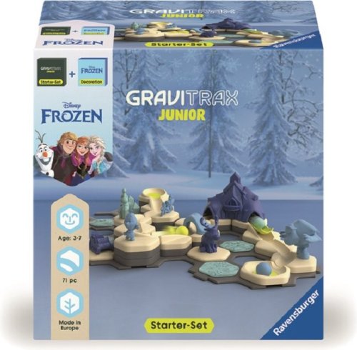 GraviTrax Junior je interaktívny systém guľôčkovej dráhy pre deti od 3 rokov. Disney: Ľadové kráľovstvo obsahuje rôzne herné figúrky Anny, Elsy, Olafa, Svena a dekoračné prvky, ako je ľadový palác a mnoho ďalších. Deti si tak sami môžu v rámci GraviTrax dráhy postaviť a preskúmať vlastné ľadové kráľovstvo. sa tu stavanie a zábava pri hraní. Všetky stavebné a dekoračné súčasti sú vyrobené z dreveného bioplastu. Bundle Disney: Ľadové kráľovstvo obsahuje GraviTrax Junior Štartovnú sadu Štart, ktorá je ideálnym vstupom do sveta GraviTrax Junior, a rozšírenie Disney: Ľadové kráľovstvo obsahujúce herné prvky a dekoračné figúrky známe z Disney rozprávky Ľadové kráľovstvo.