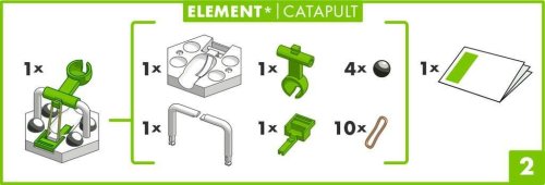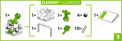 Prekonávajte prekážky! Vďaka Katapultu preletí vaša gulička vzduchom napriek zemskej príťažlivosti. Zapojením Katapultu do štartovej sady GraviTrax® získa vaša guličková dráha na napínavosti. Obsahuje: 1 aktívny diel Katapult, 4 guličky, 10 náhradných gumových krúžkov.