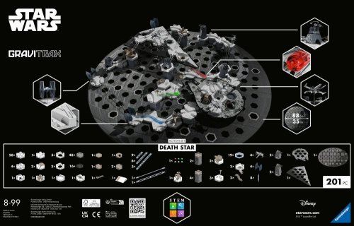 "GraviTrax Štartovacia sada Star Wars: Hviezda smrti - Zažite epickú a veľkolepú bitku medzi dobrou a temnou stranou Hviezdnych vojen zblízka so systémom guličkovej dráhy GraviTrax. Akčné vesmírne súboje ožívajú s touto štartovacou sadou GraviTrax Star Wars. Impéria a Povstalcov z Hviezdnych vojen Vďaka prvkom a komponentom GraviTrax v exkluzívnom dizajne Star Wars si môžete vytvoriť vlastnú vzrušujúcu dráhu GraviTrax. galaxie plné akcie a vzrušenia. Ponorte sa do fascinujúcej galaxie Star Wars s prvkami špeciálne upravenými do podoby Star Wars. GraviTrax Star Wars: Hviezda smrti sú exkluzívne figúrky stíhačiek X-Wing a TIE Fighter, ktoré je možné do dráhy dokonale začleniť. rokov. So stavebnicou GraviTrax si deti, tínedžeri aj dospelí nestavajú len jednoduché guličkové dráhy.