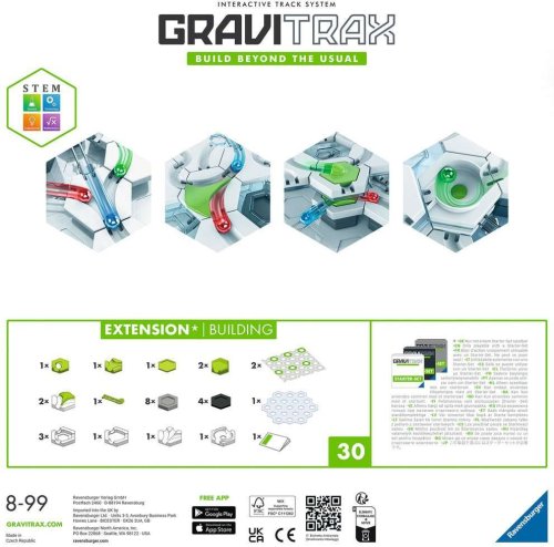 S touto sadou rozšírite svoju guličkovú dráhu o dodatočné základné dosky a ďalšie stavebné prvky, ktoré zapojíte do svojej štartovej sady GraviTrax®.