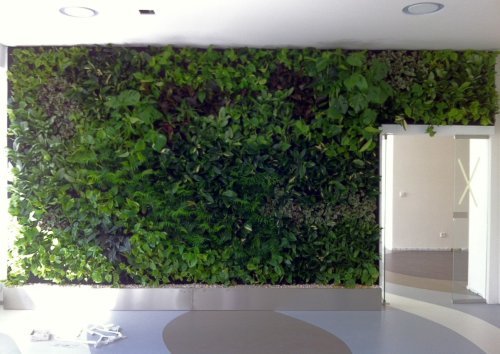 Vertikálna záhrada je nenáročná na priestor a má všetky klady zelenej plochy - zlepšuje ovzdušie, pretože vzduch čistí a zvlhčuje , izoluje od hluku a samozrejme zvyšuje prestíž daného miesta .