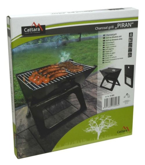 Pripravte si lahodné a šťavnaté mäso aj v kempe alebo na cestách. Skladací gril na drevené uhlie Cattara Piran prenesiete na vhodné miesto, zložíte ho a rozrobíte oheň. Umiestnite naň oceľový rošt a opečiete si mäso a zeleninu. Pochutnajte si na vynikajúcej večeri, či už ste doma na záhrade, na chate alebo niekde stanujete.