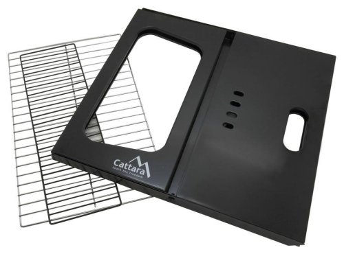 Na prednej a zadnej strane sa nachádza ventilácia , ktorá zaisťuje plynulý prísun vzduchu. Konštrukcia grilu Cattara sa vyrába z kvalitnej ocele s čiernym smaltovaným povrchom . Po zostavení je vďaka krížovému prevedeniu veľmi stabilný.