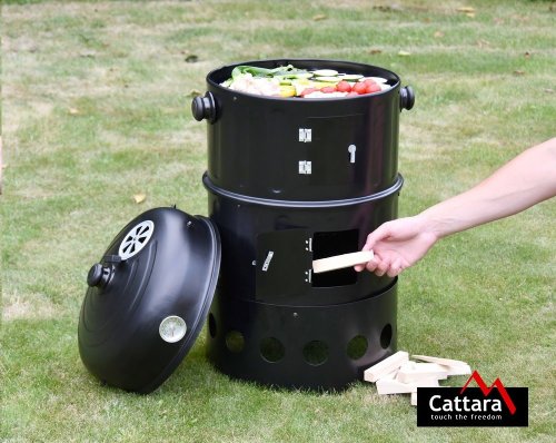 Multifunkčný gril Cattara PISA 3v1 vám pomôže s prípravou širokej škály pokrmov. Nejde iba o klasický gril, ale o gril s vodným kúpeľom , ktorý tiež poslúži aj ako udiareň . Dve nádoby grilu sú určené nielen pre drevené uhlie, ale aj pre vodu, čo otvára možnosť grilovať nad vodným kúpeľom .