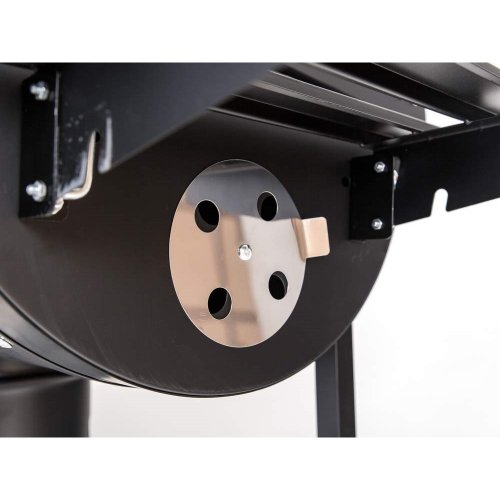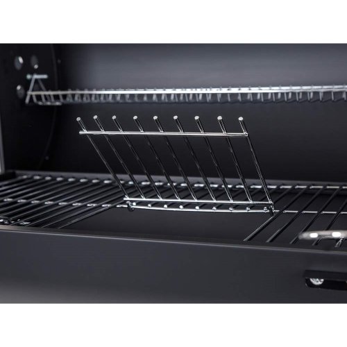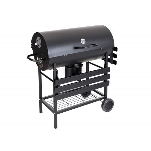 Barelový typ grilu so vstavaným popolníkom a 2 rošty (nahrievacie a grilovacie) z pochrómovanej ocele. Jednoduchá konštrukcia grilu zaisťuje jeho stabilitu. Vďaka veľkej grilovacej ploche a kvalitnej príprave pokrmov, gril využijete najmä na chatách a chalupách, ale aj na záhrade. Gril je vybavený 3 odkladacími plochami, reguláciou privádzaného vzduchu pre možnosť regulácie horenia a tým aj vnútornej teploty grilu, ktorú je možné priebežne kontrolovať vstavaným teplomerom. Pre ľahšiu manipuláciu je gril vybavený dvoma kolieskami a transportným madlom.