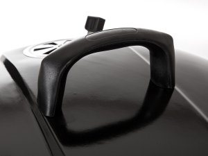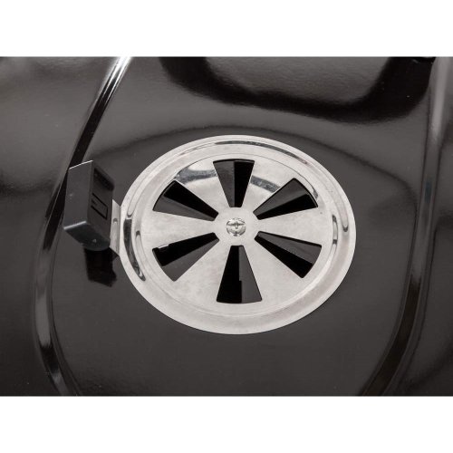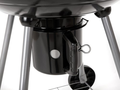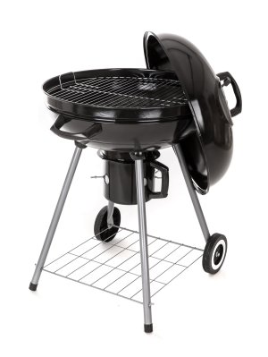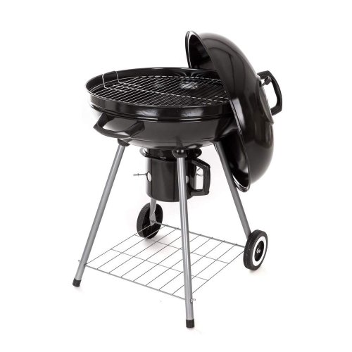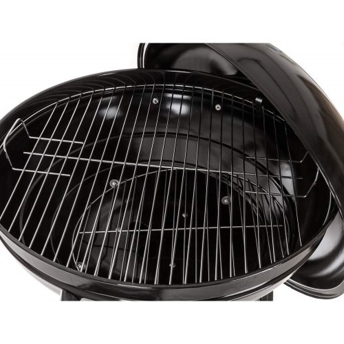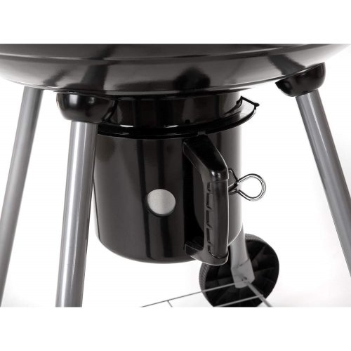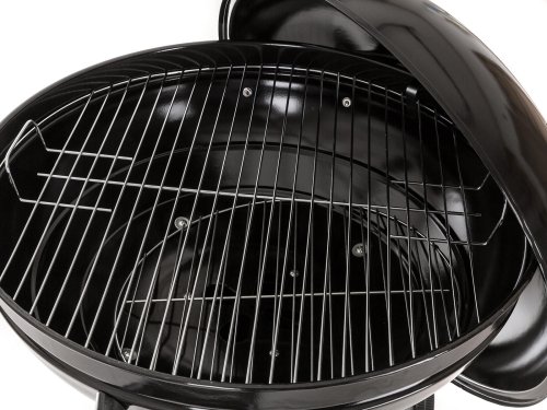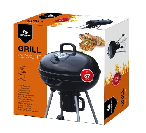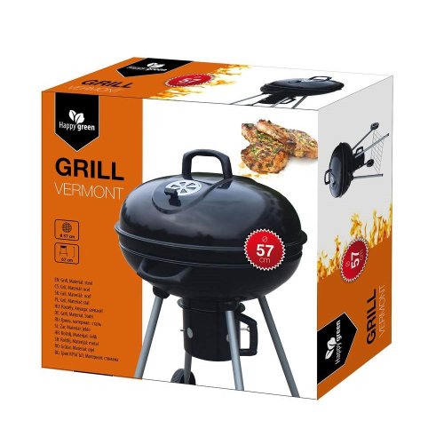 Gril VERMOUNT má smaltované ohnisko (čierne farby), chrómovaný rošt, nohy z nerezovej ocele, pozinkovaný rošt na uhlie a vyberateľný externý popolník. Pre ľahšiu manipuláciu je gril vybavený dvoma plastovými kolieskami. Rozmery: 60 x 57 x 82 cm, priemer ohniska 57 cm, výška ohniska 67 cm.