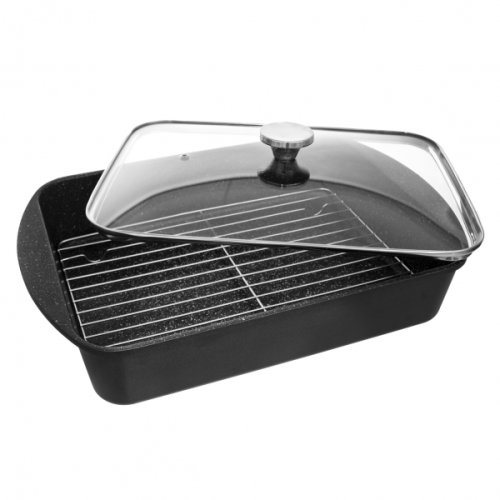 Grilovací rošt s rozmermi 32 x 32 cm.