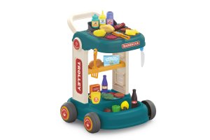 Grilovací vozík. Rozmery 34x36x37 cm. Balenie obsahuje vozík na kolieskach, potraviny, riad, príslušenstvo na grilovanie.