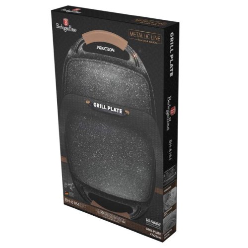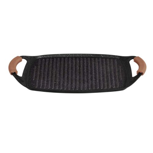 - Rozmery: 47 x 29 cm materiál: tlakovo liaty hliník trojvrstvový nepriľnavý povrch s mramorovým dizajnom pre varenie s minimom tuku farba: čierna / zlatá- TURBO indukčné dno odnímateľné silikónové rukoväte …