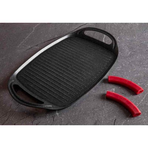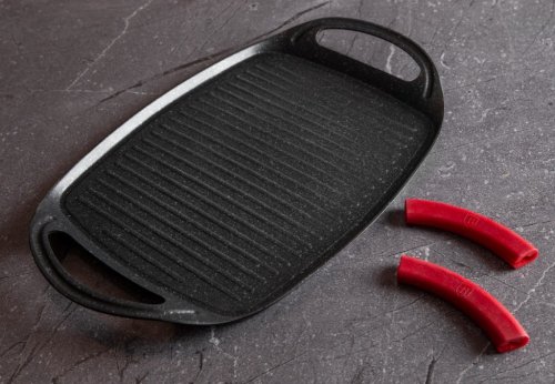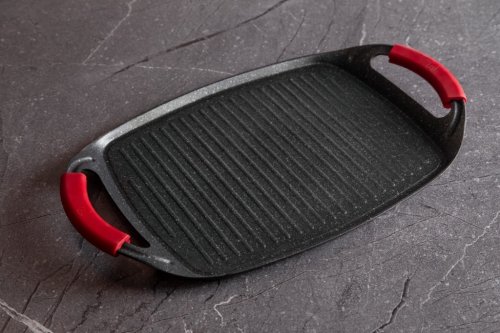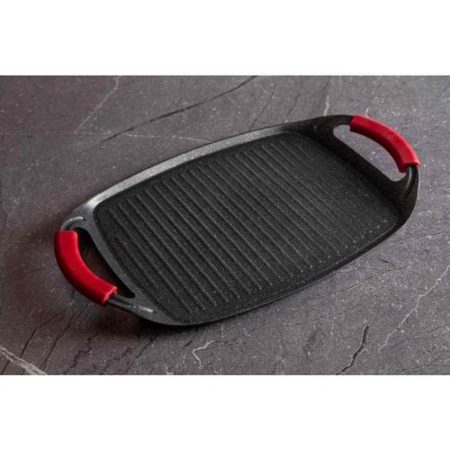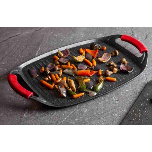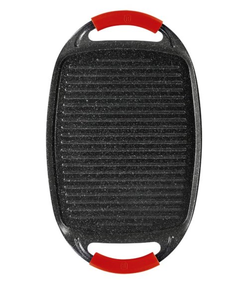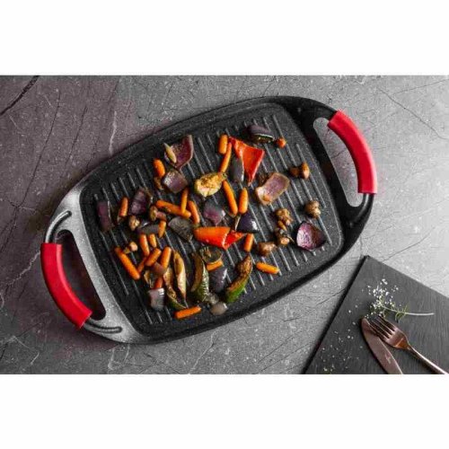 Grilovacia doska z kolekcie riadu Burgundy Edition s mramorovým povrchom je perfektná na grilovanie doma aj vonku. Použiť je možné na všetky druhy sporákov, v rúre, alebo vonku na vašom grile. Veľmi efektný je aj pre priame servírovanie grilovaných špecialít. Vďaka šikovne vyriešeným rukovätiam je manipulácia pohodlnejšia a bezpečnejšia ako pri klasických táloch. Na doske je možné pripravovať mäso, zeleninu, ryby, klobásky, burgre, volské oká alebo aj pizzu, vďaka mramorovému povrchu navyše s minimom tuku, či už na sporáku, v rúre alebo na grile.