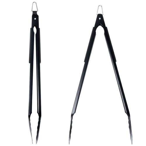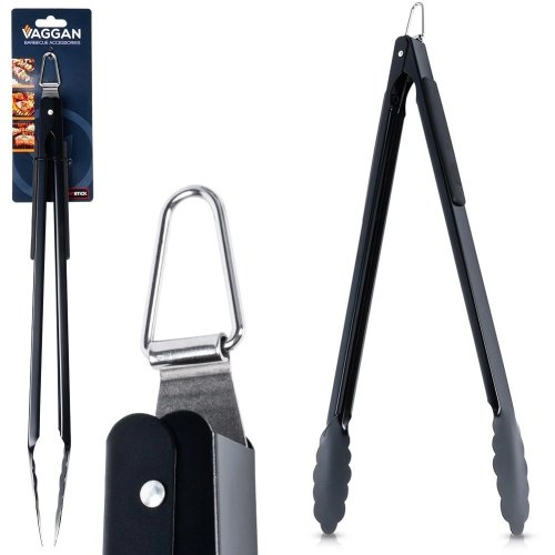 grilovacie kliešte, celková dĺžka 51xš2,3cm, najširšia časť klieští 5cm, hrúbka 1mm, čierny nepriľnavý (ptfe) kovový povlak (nerezová oceľ ss430) s rukoväťou 12,8cm