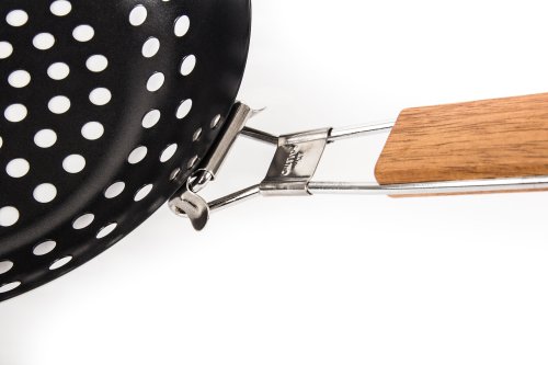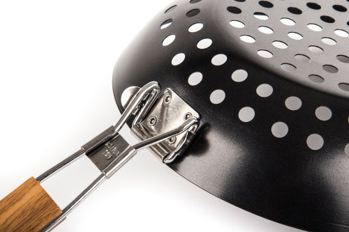 Zaobstarajte si nepriľnavú grilovaciu panvicu G21 s priemerom 28 cm pre grilovanie na plynových griloch aj na griloch na drevené uhlie. Okrúhla grilovacia panvica má po celom svojom povrchu otvory s priemerom 10 mm . Preto sa zelenina aj mäso grilujú rovnomerne, ale zároveň neprepadávajú do ohňa, aj keď sú rozkrájané na menšie kúsky.