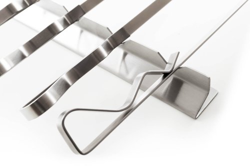Naložte si mäso, zeleninu alebo čokoľvek, čo chcete na grilovacích ihlách pripraviť. Potom jednotlivé kusy surovín napichnite postupne na grilovacie ihly, kým nie sú plné. Stojan umiestnite na rošt grilu a vložte doň naplnené ihly. Postupne ihly na stojane otáčajte, aby sa všetko grilovalo rovnomerne zo všetkých strán. Po ugrilovaní ihly zložte z grilu a môžete ihneď servírovať. Dobrú chuť!