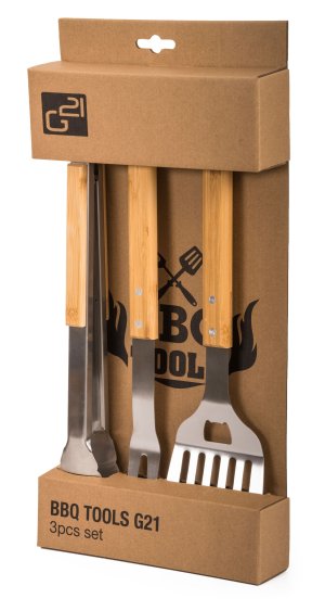 Doprajte si pohodlie pri grilovaní s praktickou 3-dielnou sadou G21 . Grilovacie náradie je vyrobené z odolnej nerezovej ocele a má štýlové bambusové rukoväte . Vďaka premyslenému spracovaniu skvele vyzerá a zaručuje komfort pri každom grilovaní.