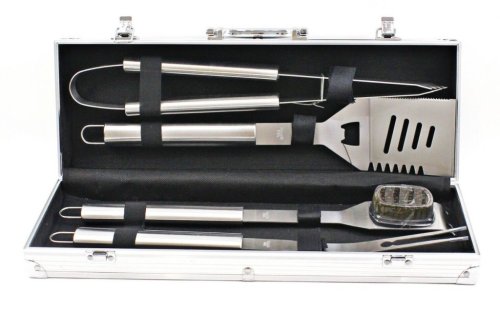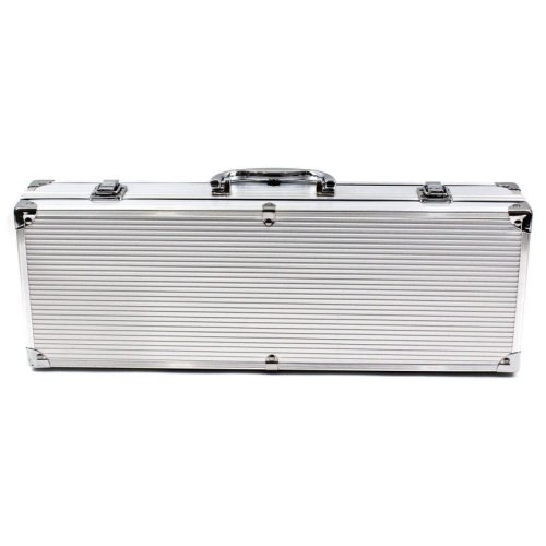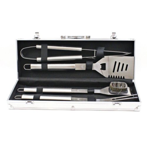 Pokiaľ radi grilujete, určite potrebujete solídne náradie ku grilu. Súprava PROGARDEN obsahuje celkom 4 kusy náčinia z nerezovej ocele. Všetky kúsky sú robustné s dlhou rukoväťou, takže sa Vám bude náčinie dobre ovládať a nespálite sa. Grilovacia obracačka je prispôsobená na porciovanie mäsa a má v sebe zabudovaný otvárač na fľaše. Celý set je uložený v striebornom prenosnom kufríku. Vďaka peknému baleniu v kufríku je sada veľmi vhodným darčekom pre nadšencov do grilovania. Buďte pripravení, až začne grilovacia sezóna. Sadu je možné doplniť ešte o ďalšie príslušenstvo ku grilu od značky PROGarden. - materiál: nerezová oceľ - robustné náčinie s dlhou rukoväťou - očko na zavesenie - kufrík s rukoväťou so zatváraním na dva klipsy - sada obsahuje: - 1x kefa / škrabku na čistenie grilu 43 cm - 1x grilovacie kliešte 43 cm - 1x grilovaciu obracačku s 1 na fľaše 43 cm - 1x porcovací vidličku 43 cm - 1x skladovací uzatvárateľný kufrík s rukoväťou 46 x 16 x 8 cm - značka: PROGarden