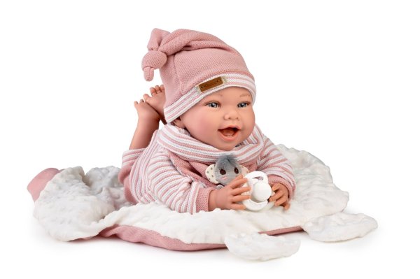 Záťažová bábika bábätko bez zvuku s mäkkým látkovým telom. Ruky a nohy sú k telu prichytené kĺbom. Bábätko je polohovacie a môže aj sedieť, avšak vďaka zaťaženiu hlavičky sú jej pohyby odlišné od ostatných bábätiek. Hlavička sa jej na krku pohybuje v závislosti od celkovej manipulácie s bábikou av náručí sa chová ako skutočné bábätko, ktorému je potrebné hlavičku ešte pridržiavať. Vďaka záťažovým výplniam v hlave a na zadočku má tento typ bábiky bábätka vyššiu váhu oproti ostatným (cca 1800 g) a je vnímaná ako manipulačná bábika, ktorá je vhodná nielen pre deti, ale aj pre seniorov alebo ako pomôcka pre inklúziu a osoby so špeciálnymi potrebami. Tieto bábiky sa používajú v ergoterapii, kde pomáhajú rozvíjať jemnú motoriku a koordináciu u detí aj dospelých. Sú tiež výborným pomocníkom pri práci s ľuďmi s demenciou, kde navodzujú klientom pocity pokoja a bezpečia. Záťažová výplň bábiky: látkové vrecká plnené kremičitým pieskom. Veľkosť 42 cm. Ručne vyrobené v Španielsku, balené v darčekovej krabici. Odporúčaný vek od 3 rokov.