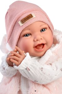 Záťažová bábika bábätko bez zvuku s mäkkým látkovým telom. Ruky a nohy sú k telu prichytené kĺbom. Bábätko je polohovacie a môže aj sedieť, avšak vďaka zaťaženiu hlavičky sú jej pohyby odlišné od ostatných bábätiek. Hlavička sa jej na krku pohybuje v závislosti od celkovej manipulácie s bábikou av náručí sa chová ako skutočné bábätko, ktorému je potrebné hlavičku ešte pridržiavať. Vďaka záťažovým výplniam v hlave a na zadočku má tento typ bábiky bábätka vyššiu váhu oproti ostatným (cca 1800 g) a je vnímaná ako manipulačná bábika, ktorá je vhodná nielen pre deti, ale aj pre seniorov alebo ako pomôcka pre inklúziu a osoby so špeciálnymi potrebami. Tieto bábiky sa používajú v ergoterapii, kde pomáhajú rozvíjať jemnú motoriku a koordináciu u detí aj dospelých. Sú tiež výborným pomocníkom pri práci s ľuďmi s demenciou, kde navodzujú klientom pocity pokoja a bezpečia. Záťažová výplň bábiky: látkové vrecká plnené kremičitým pieskom. Veľkosť 42 cm. Ručne vyrobené v Španielsku, balené v darčekovej krabici. Odporúčaný vek od 3 rokov.